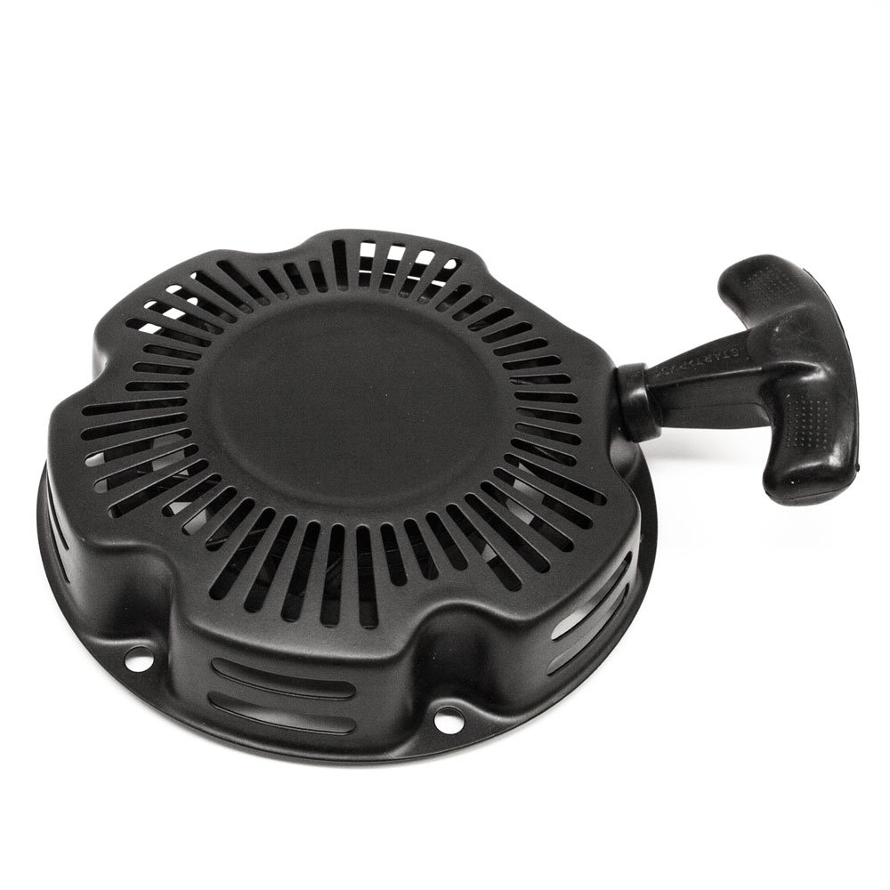 Figure 1: The EARTHQUAKE 10095 Replacement Recoil Assembly R100. This image shows a black recoil starter assembly with a pull handle, designed for starting small engines.